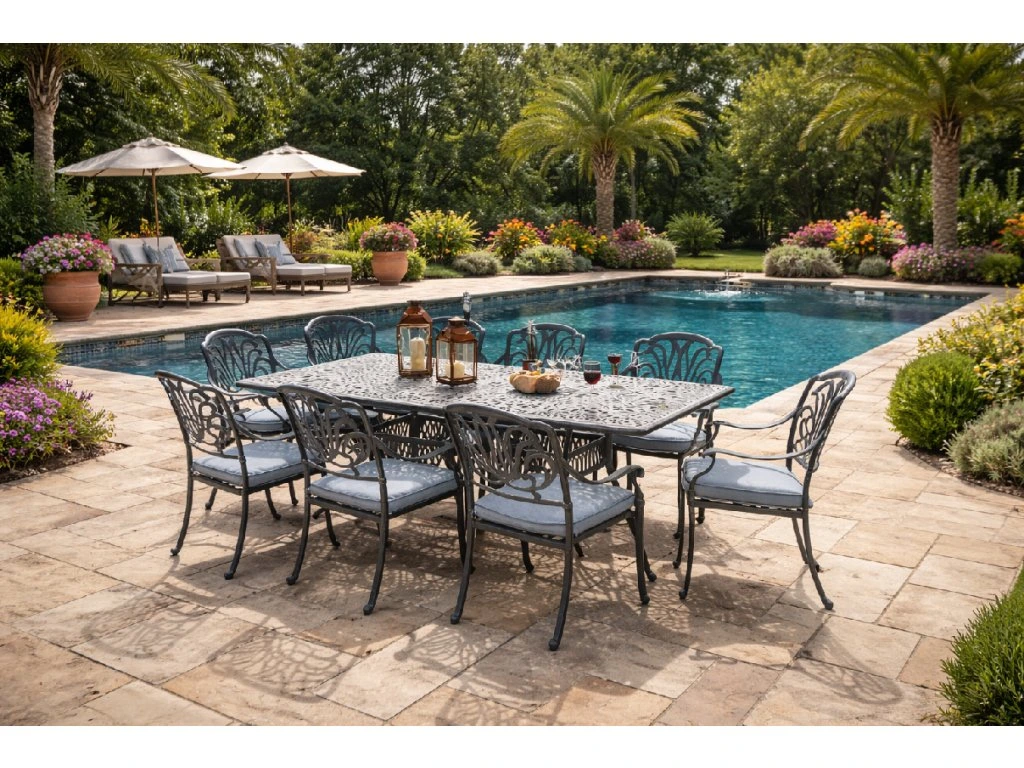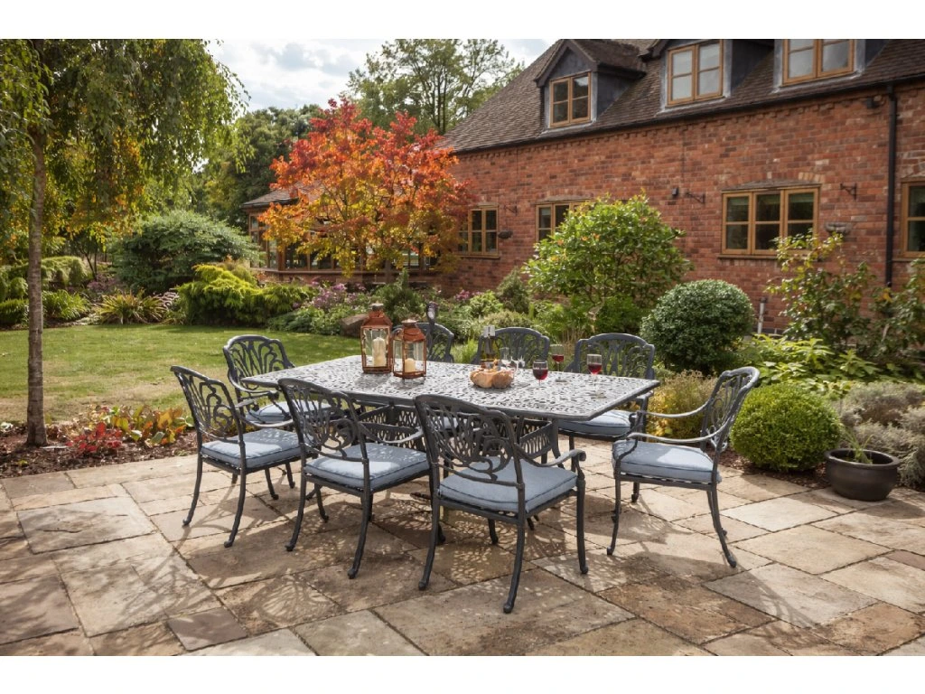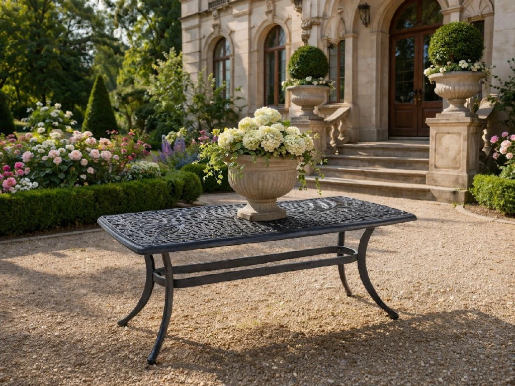 Jídelní zahradní stůl Amalfi je vyroben z litého hliníku s romantickým nádechem. Společně s jídelními židlemi Amalfi vytvoříte okouzlující místo ve vaší zahradě.