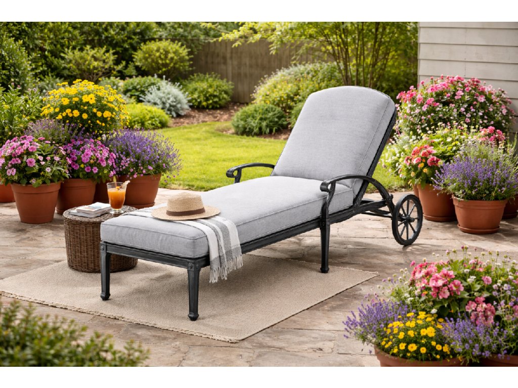 Zahradní lehátko Amalfi v romantickém stylu má kostru vyrobenou z litého hliníku. V kombinaci s polstrem šitým na míru patří Amalfi mezi naše nejpohodlnější lehátka. Polstr, který je barevně sladěný ke kostře, je součástí výrobku. Velká kolečka jsou praktická pro snadné manipulování.