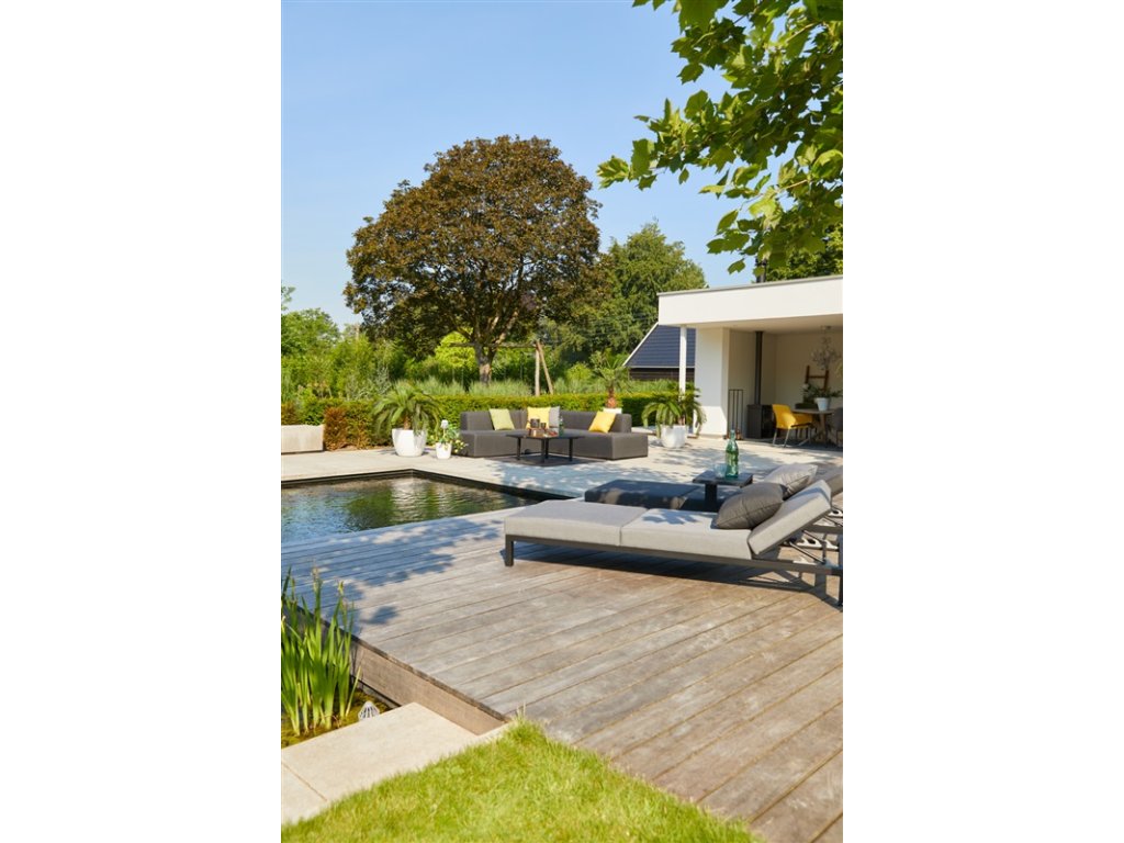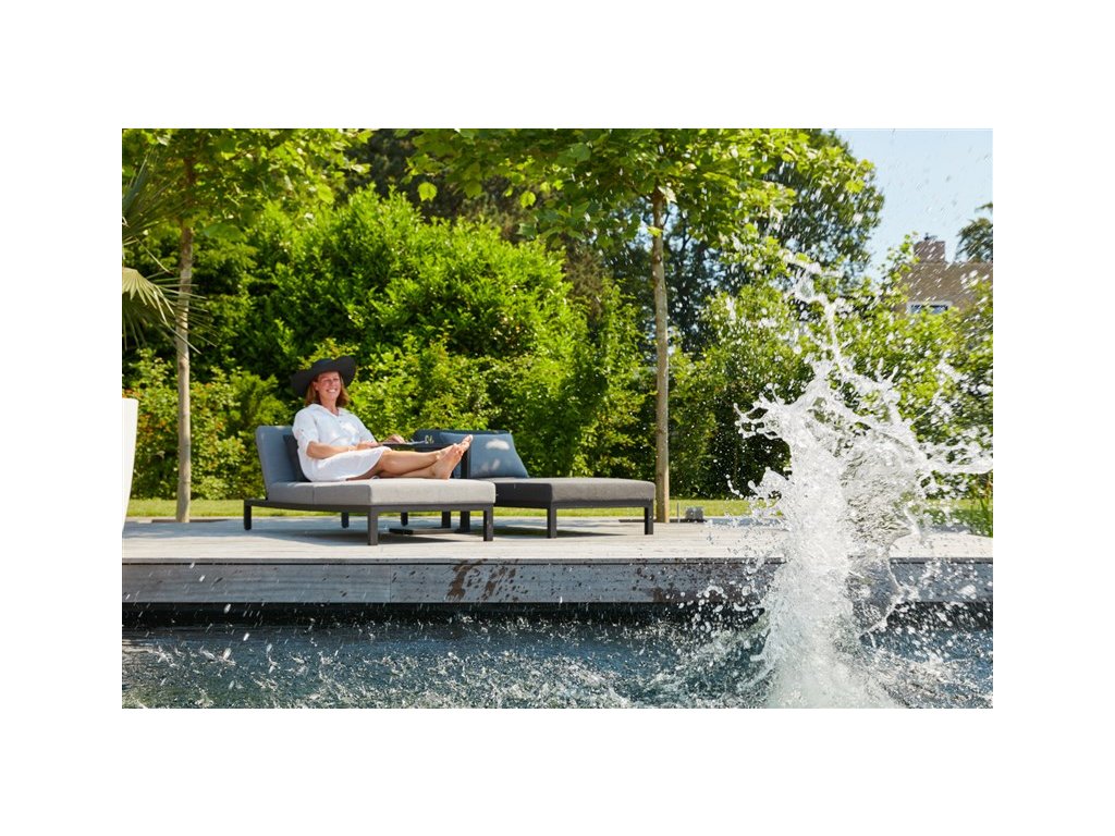 Lucas je zahradní lehátko z kolekce Hartman s hliníkovou kostrou a čalouněním se speciálním povrchem All weather.