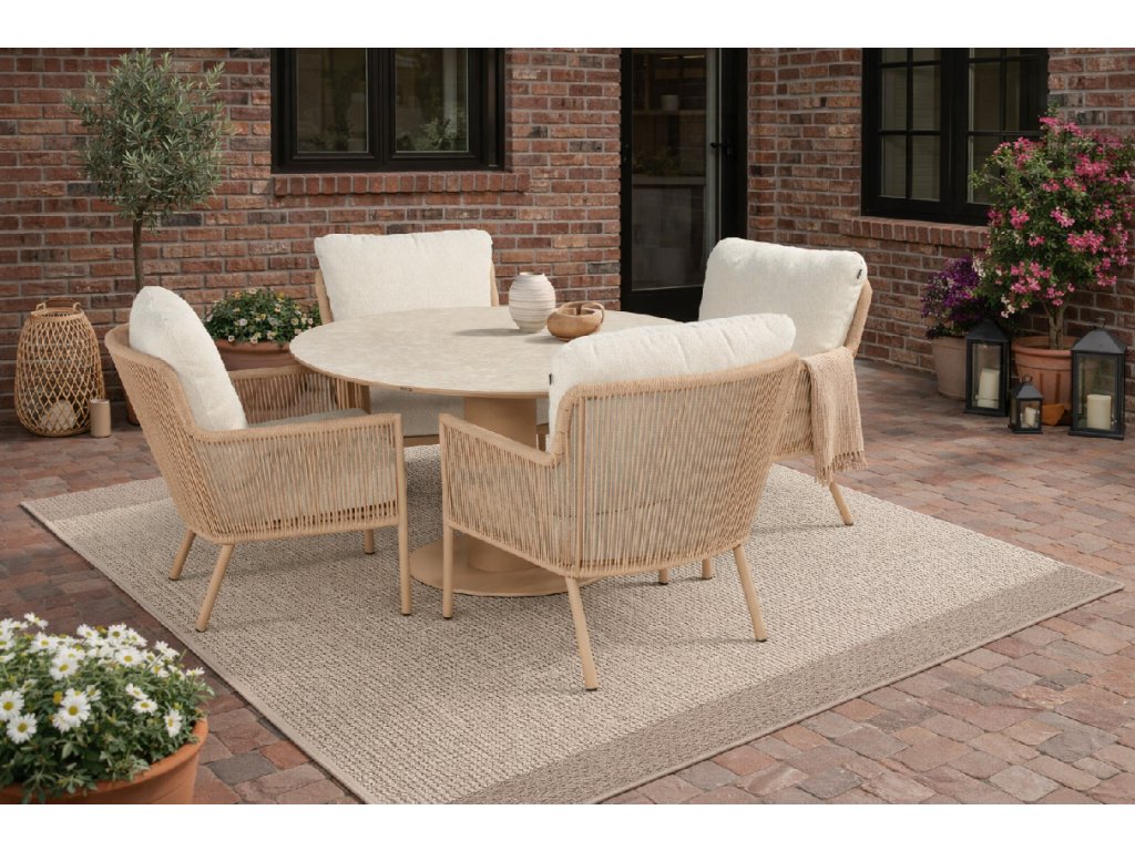 Venkovní koberec Portofino od firmy Hartman je vyroben v severském stylu v barvě taupe. Vhodný pro domácí použití, pro terasy a dvory, balkóny, terasy, zahrady a venkovní prostory. Doplněk, který vytvoří výbornou izolaci od podlahy a zároveň povýší váš jídelní nebo sedací prostor o level výše. Odolná tkanina se snadnou údržbou dobře drží při každodenním používání.