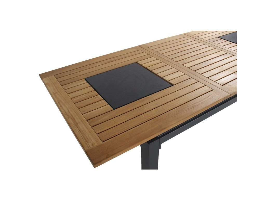 Zahradní stůl Hartman Concept je tvořen hliníkovým rámem s teakovou deskou, do které jsou vsazeny kamenné desky. Stůl lze kombinovat s libovolnou židlí. Díky kombinaci teaku, hliníku a vložených desek se hodí k jakémukoliv nábytku. Teakové dřevo dodává stolu přírodní a teplý vzhled. Kostra je pevná a stabilní.