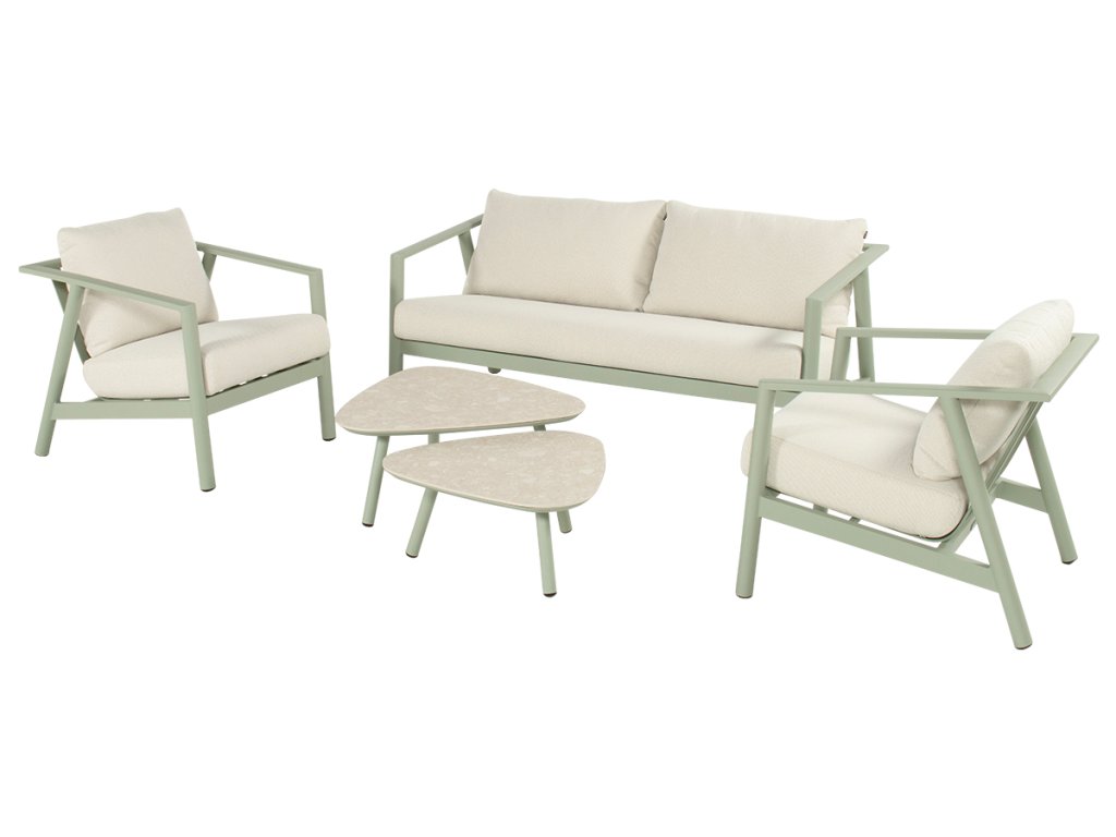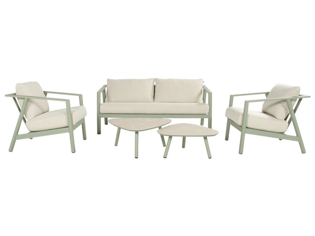 Zahradní sezení Rana Hartman je velice pohodlné. Křesla a lavice pro 3 mají hliníkový rám a polstry jsou šité na míru. Zahradní nábytek je díky své ergonomii neuvěřitelně pohodlný. Set se dvěma stolky je velice praktický.