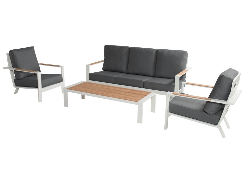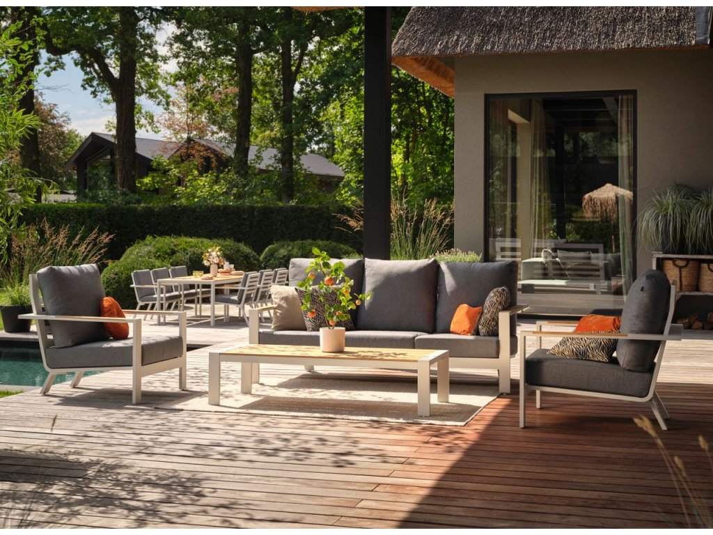 Přímé linie dávají této salonní řadě Breeze Hartman trendy vzhled. Perfektně se hodí do moderní zahrady! Díky extra velké 3místné pohovce je zde další prostor pro návštěvníky nebo pro odpočinek. Rám je vyroben z pevného hliníku, který je odolný vůči různým povětrnostním podmínkám. Polštáře jsou velice pohodlné a šité na míru. Potahy jsou speciálně upravené na venkovní použití (quick dry foam-rychleschnoucí pěnou).