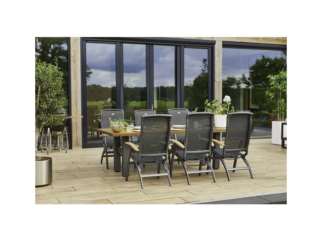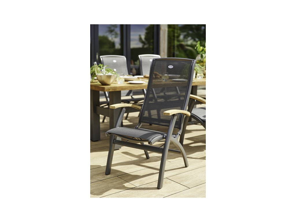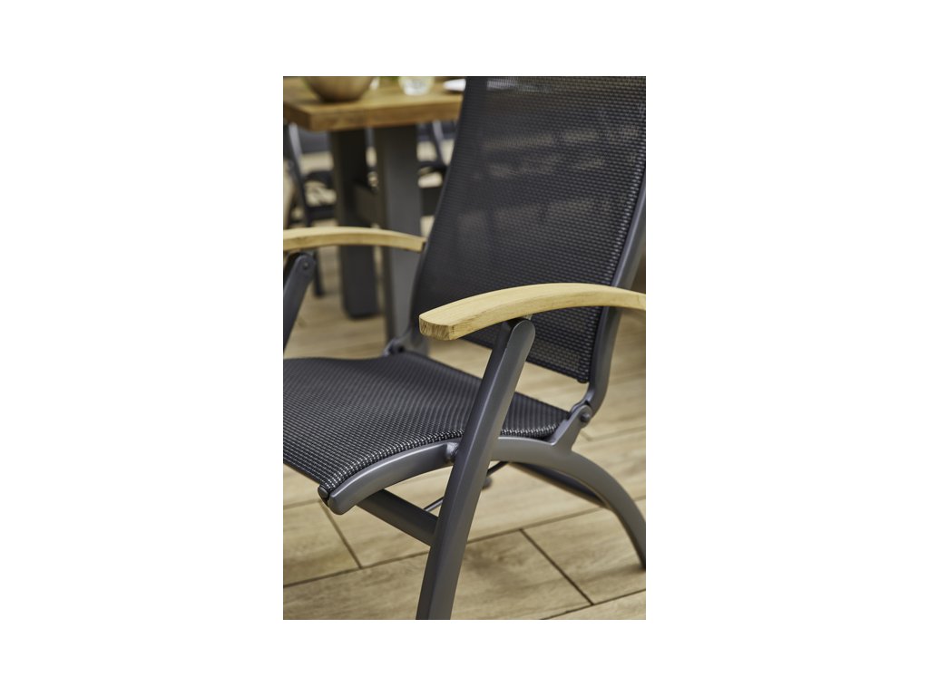 U této zahradní židle Hartman DaVinci je látka barevně sladěná s kostrou křesla. Díky své ergonomii je neuvěřitelně pohodlné, prakticky bezúdržbové a garance nosnosti je do 150kg. Se stolem z řady Hartman utvoří dokonalý celek, který poslouží k naprosté relaxaci ve vaší zahradě . Hliníkové křeslo je vybaveno pětistupňovým polohovacím systémem a teakovými područkami pro ještě větší pohodlí při posezení. Vzhledem k područkám z teaku má židle teplý a příjemný dotek. Zahradní nábytek Hartman může být kombinován se dřevem i hliníkem. Veškeré spoje a klouby jsou hliníkové.