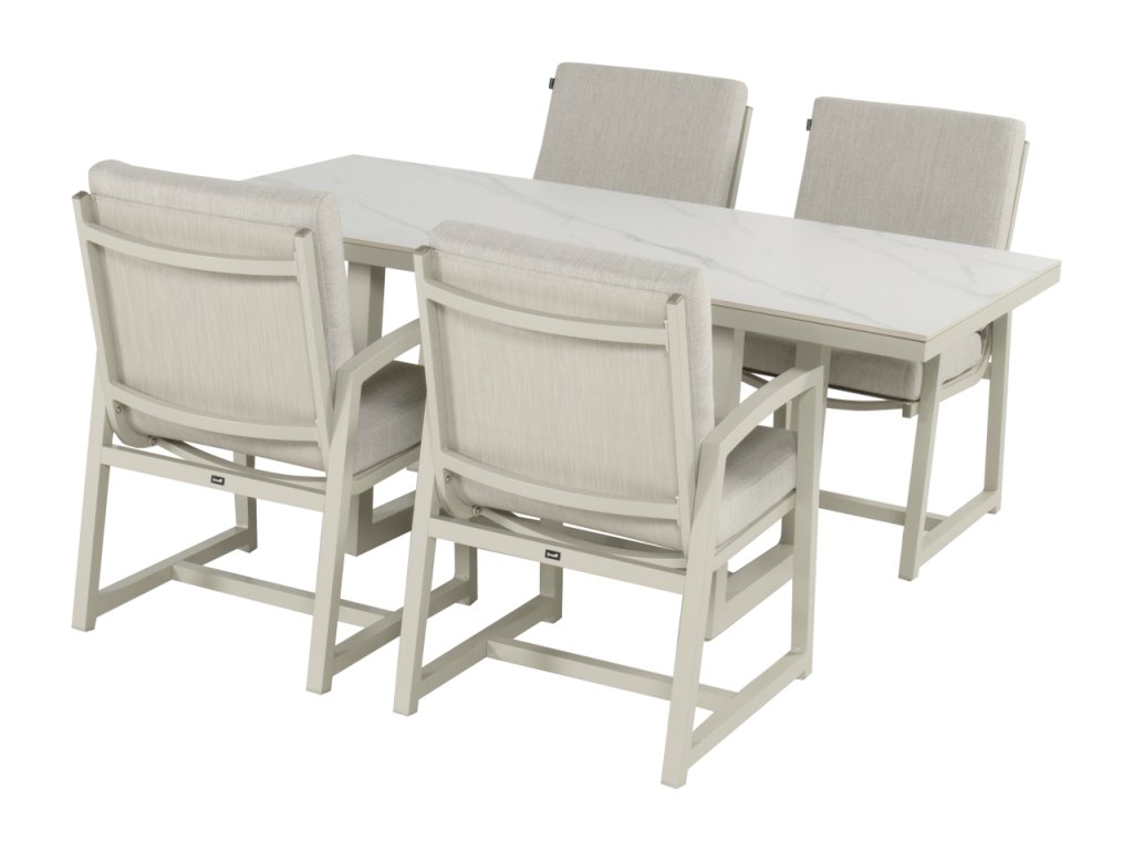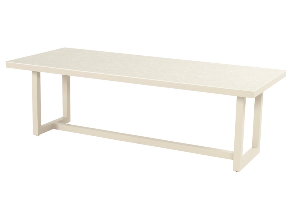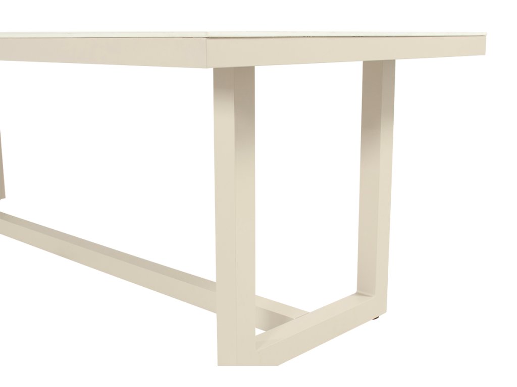 Pokud hledáte moderní a elegantní zahradní stůl, jídelní stůl Luto je pro vás tou správnou volbou! Keramická deska stolu v kombinaci s hliníkovým rámem poskytuje extrémně robustní stůl. Podnož je vyrobenou z extrémně pevného hliníku.