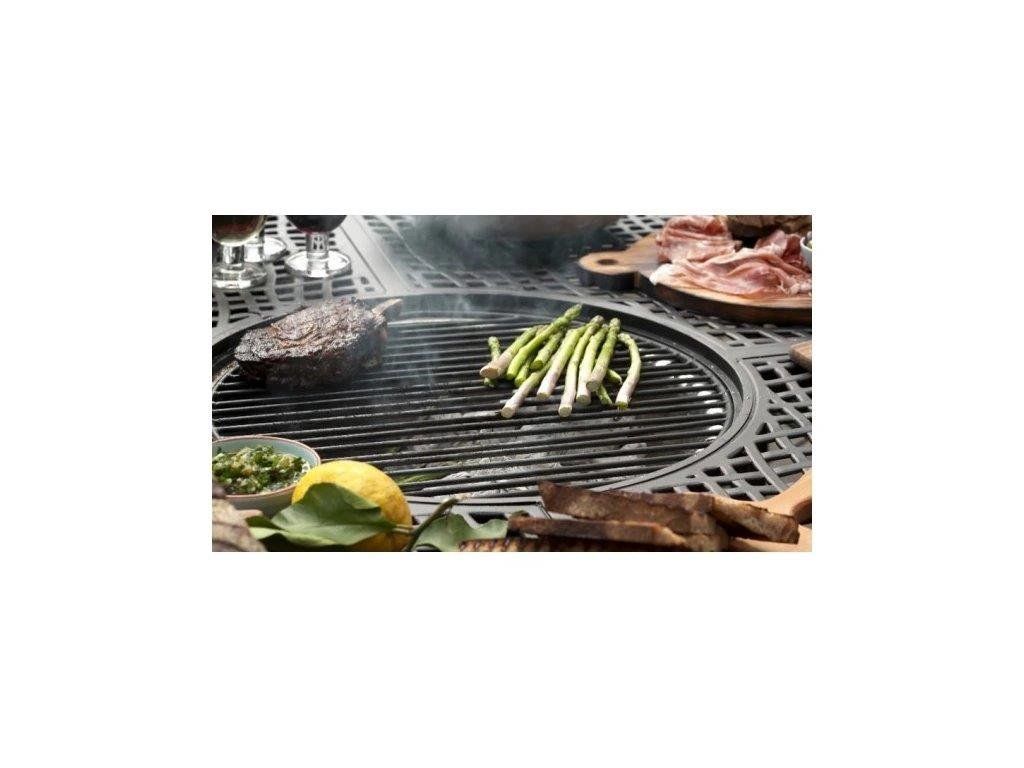 Stačí nasypat dřevěné uhlí, nasadit grilovací mřížku a můžete pohodlně grilovat přímo u stolu. Všichni tak zůstávají součástí společného posezení a nikdo nemusí stát stranou u samostatného grilu.