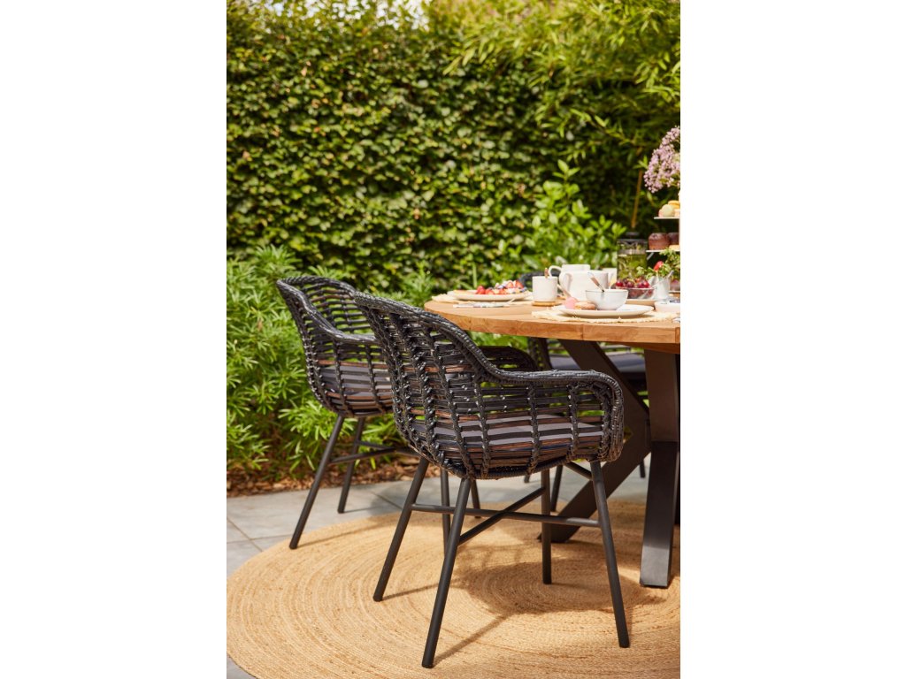 Zahradní jídelní stůl Hartman Stephanie je vyroben ze silnostěnné ALU slitiny s originální podnoží v barvě black. Deska stolu je vyrobena z kvalitního dřeva - teaku. Stůl má krásný design. Ideální pro ty, kteří hledají moderní design. Je výjimečný pro svůj vzhled. Ke stolu dokonale pasuje zahradní jídelní křeslo Hartman Cecilie. Židle je vyrobena z umělého proutí v odstínu puma black a elegantní hliníkové podnože ve stejné barvě. V zádové části je nádherná křivka, která splní veškeré podmínky pohodlnosti při stolování. Ideální pro skvělý odpočinek.