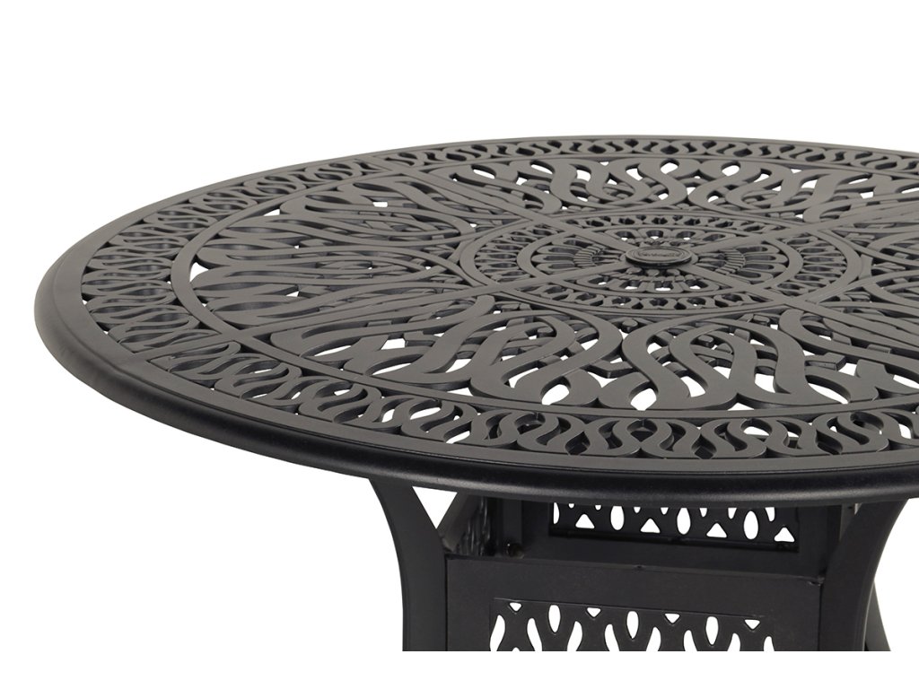Tento krásný velký stůl Hartman Amalfi je vyroben z litého hliníku. Jeho design mu dodává romantický vzhled a spolu s židlemi Amalfi to bude poutač pro vaši zahradu. Maximální průměr otvoru na slunečník je 5,6cm.