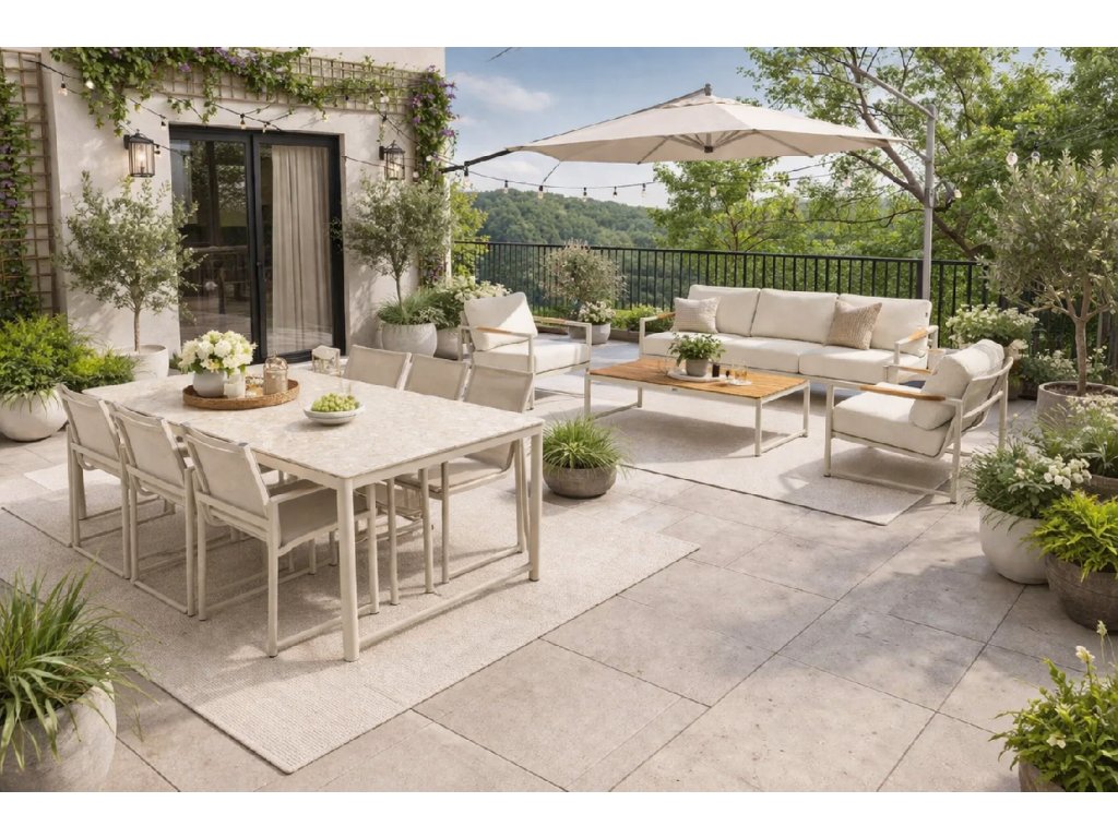 Zahradní jídelní set Hartman Fontaine se stolem o rozměru 240x100cm v barvě sand.