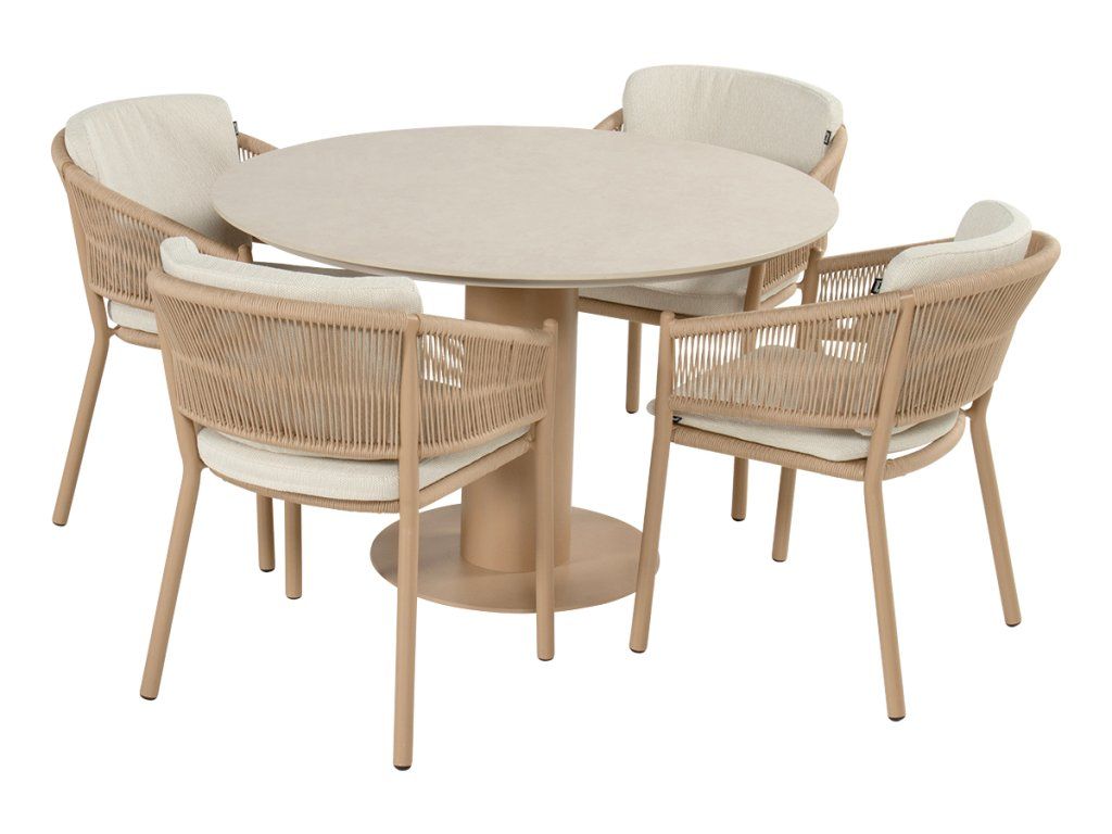 Jeho kulatý tvar vytváří příjemnou, přirozenou atmosféru pro společné chvíle, zatímco elegantní odstín cappuccino podnože a keramická deska dodávají prostoru lehkost a moderní styl. Girona není jen praktický stůl — je to designový prvek, který promění i menší terasu v místo plné pohody a vkusu.