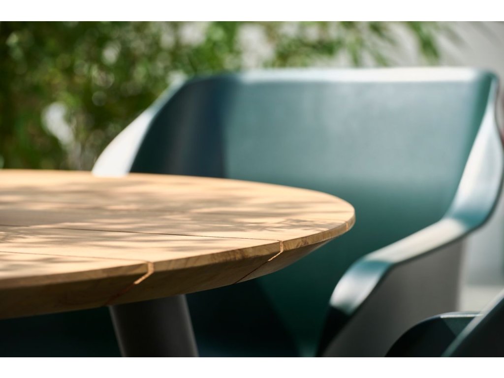 Zahradní designový stůl Stephanie je kulatého typu o rozměru 150cm. Kombinace dřeva a kovu je jedinečná.