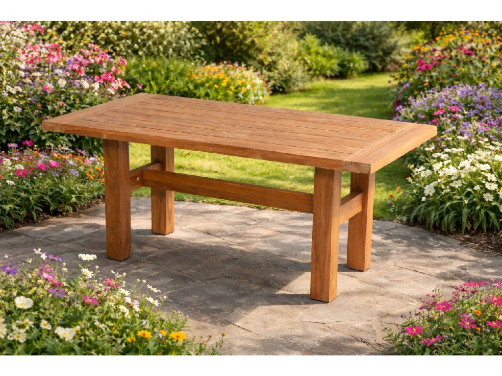 Nádherný zahradní jídelní stůl Harmtan Sohpie s nadčasovým designem z certifikovaného teaku.