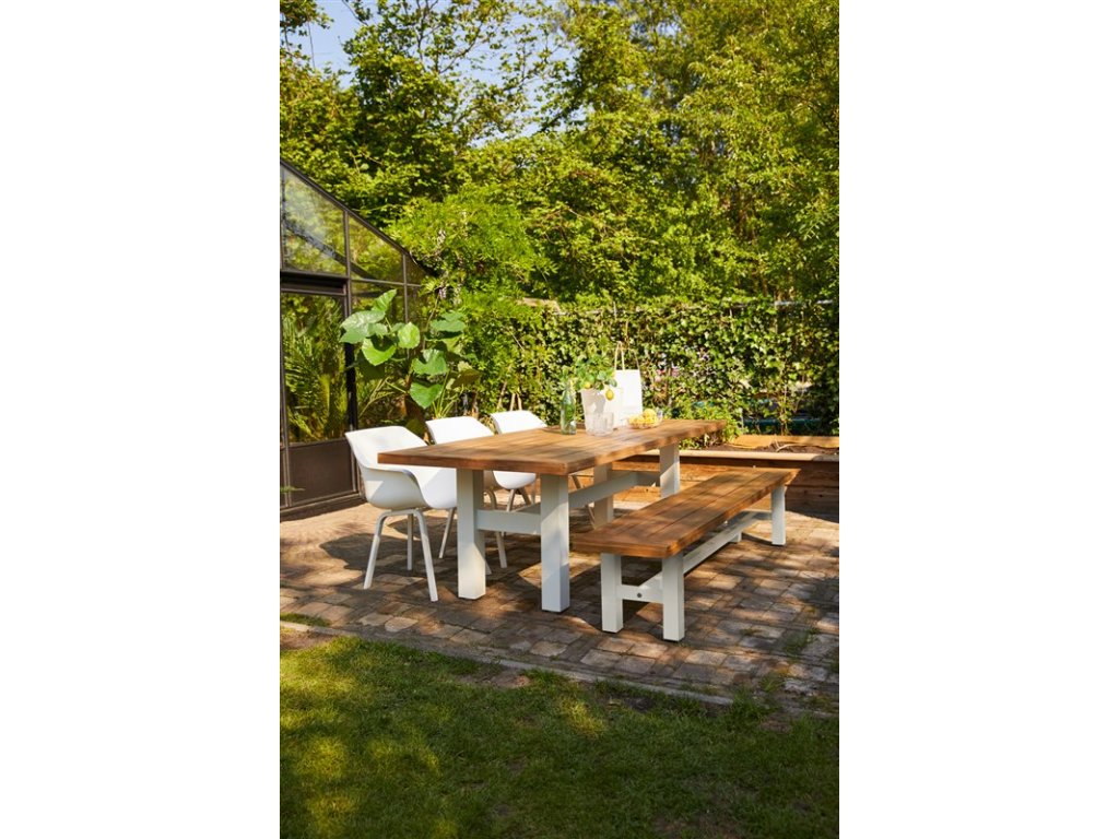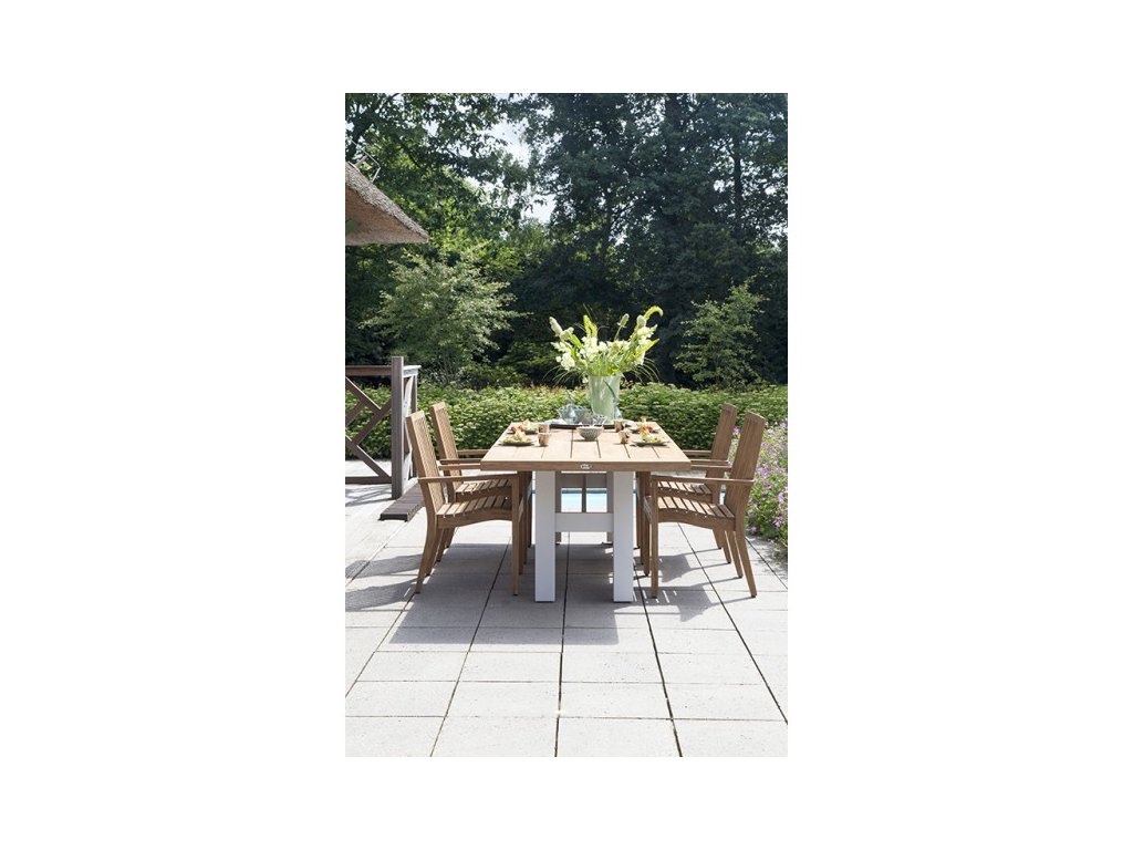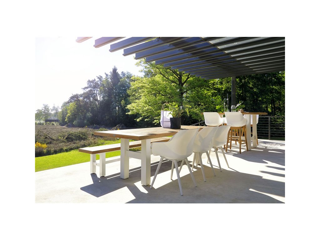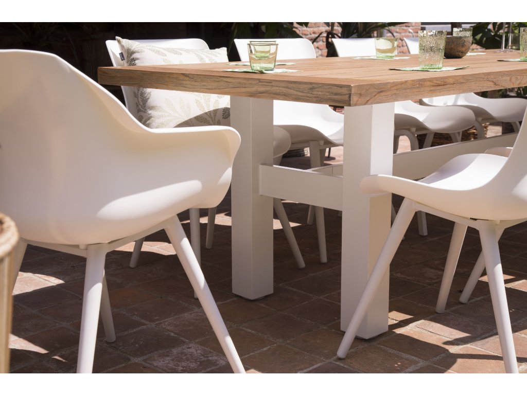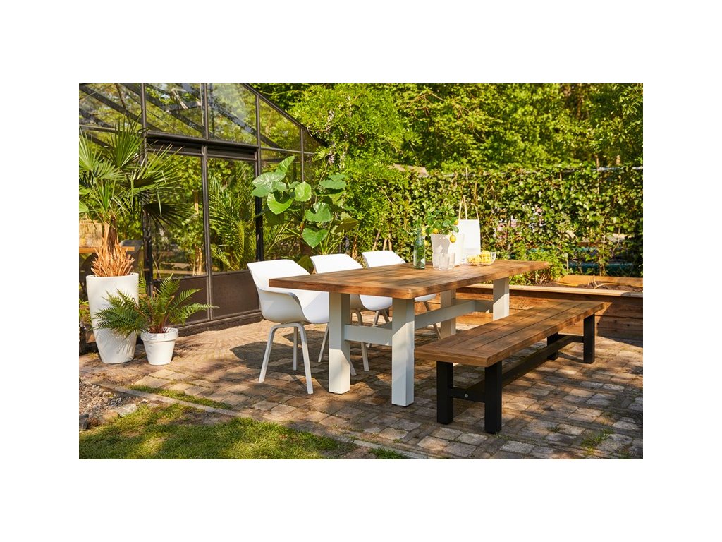 Tento zahradní jídelní stůl Hartman Yasmani o rozměru 240x100 cm je vyroben z hliníku ve 2 různých barevných odstínech kostry a deska je z teaku. Prostorný, velký a variabilní stůl má originální bytelnou podnož. Elegantní vzhled splňuje veškeré požadavky na dnešní luxusní zahradní nábytek. Nohy jsou stavěny do H-rámu, který je nejen stylový, ale poskytuje stolu dobrou stabilitu.