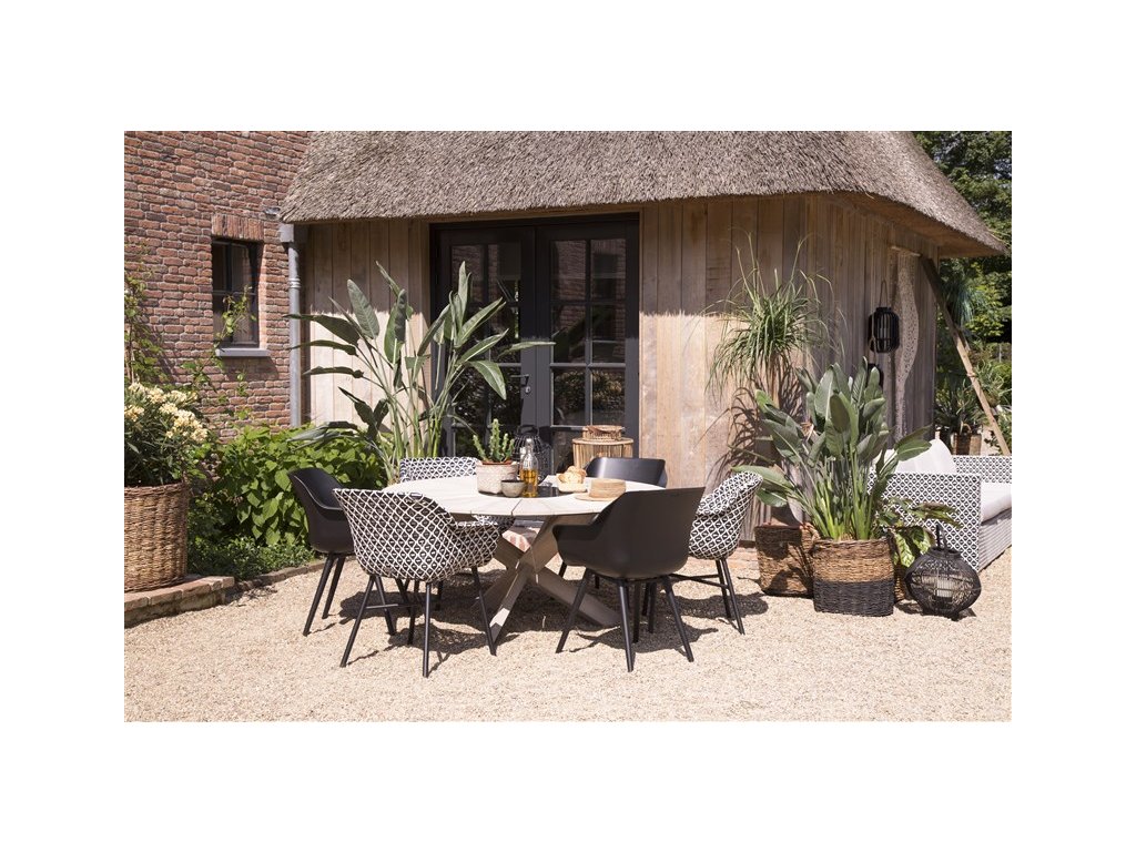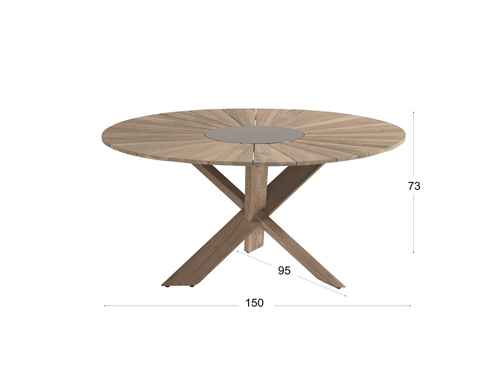 Zahradní jídelní stůl je velký a kulatý. Uprostřed desky stolu je žulová vložka. To dává Provence moderní nádech! Překřížená základna je super praktická, protože nohy stolu nikdy nepřekáží židlím! Tento stůl můžete klidně nechat venku po celý rok.