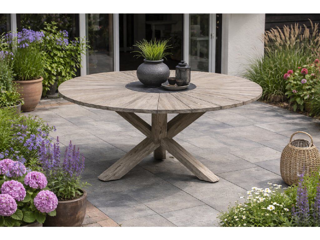 Provence zahradní teakový stůl Hartman o průměru 150cm v barvě light grey