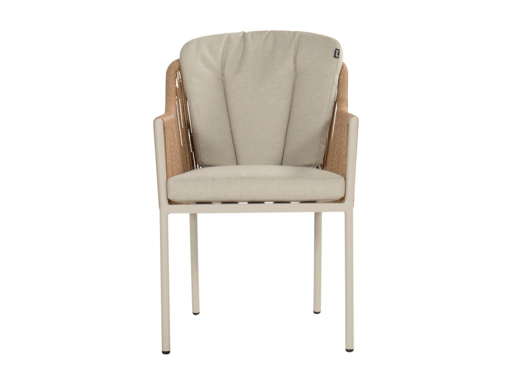 Sevilla Hartman je zahradní jídelní křeslo s provázkovým výpletem v barvě cappuccino a sedáky.