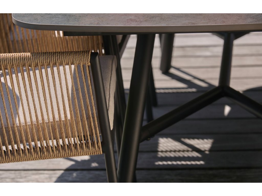 Cairo Hartman je zahradní jídelní křeslo s provázkovým výpletem a sedáky.