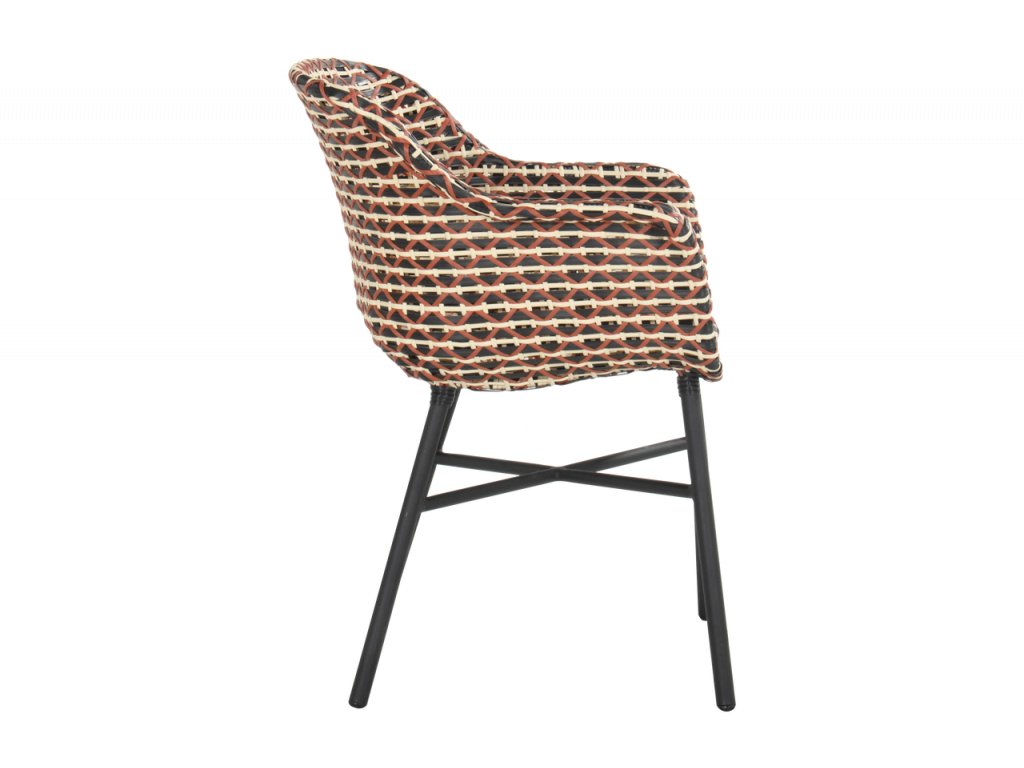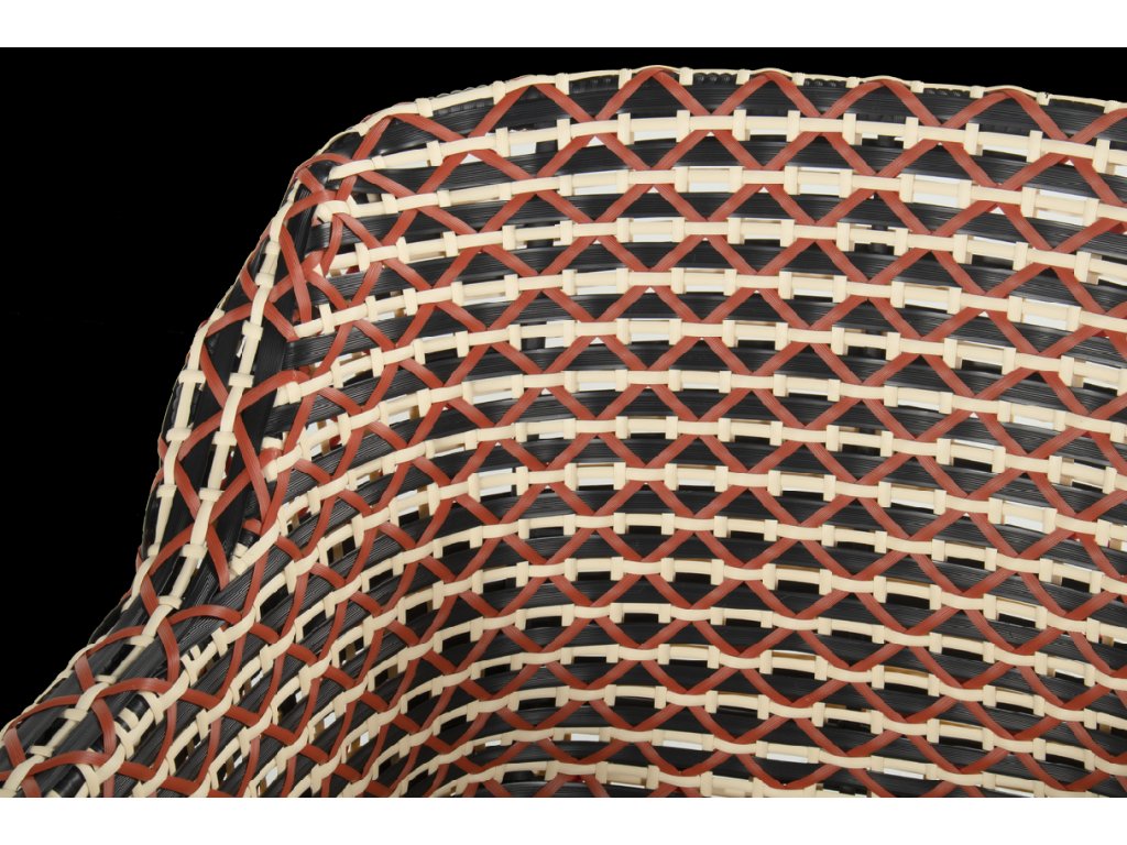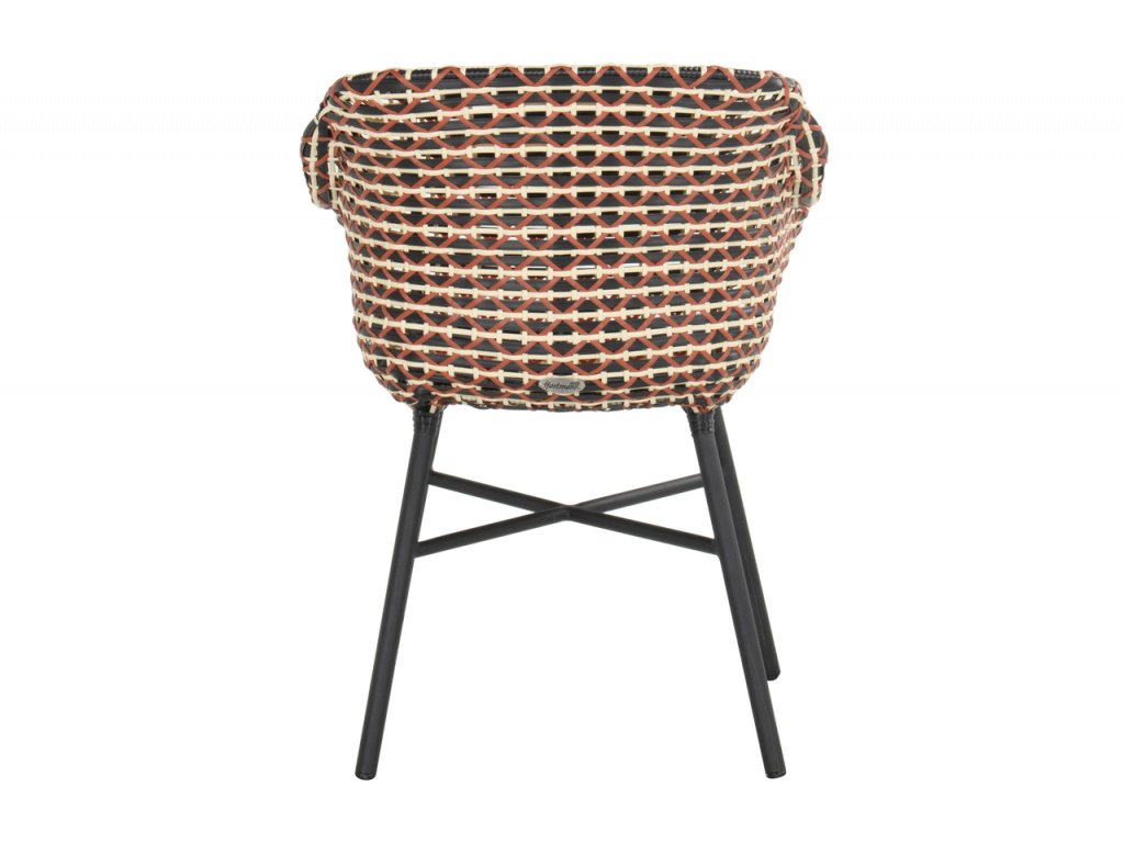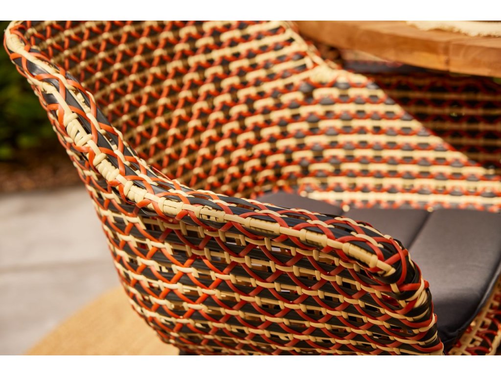 Získáte maximální oporu v zádech, abyste mohli v pohodlí dlouho sedět. Je vyrobena z hliníkové kostry barvy černé a z umělého ratanu v dominujícím odstínu červené. Pruty jsou elegantně spleteny z tříbarevné vazby a působí velice luxusně a jedinečně. Tento výplet je novinka firmy Hartman.