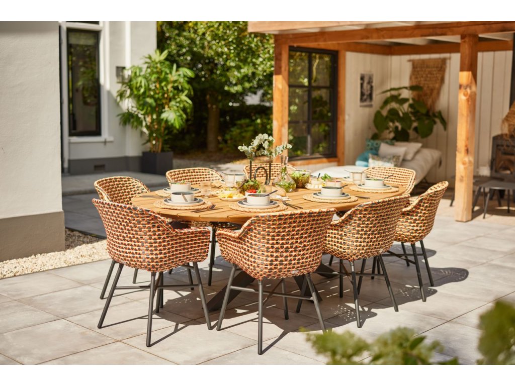Sevilla Hartman je zahradní jídelní křeslo s provázkovým výpletem a sedáky.