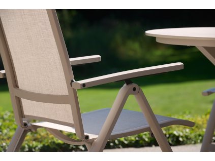Nekonečný požitek! Jídelní polohovací křeslo Flora je pohodlné díky textilní opěrce a sedáku. Židle má také přirozený vzhled díky skvělým polštářům. Jídelní polohovací židle Flora je nastavitelná pomocí vzduchové pumpy, která se aktivuje tlačítkem na rámu. To vám umožní nastavit židli s přesností na centimetry. Ideální pro vychutnání každého slunečního paprsku.