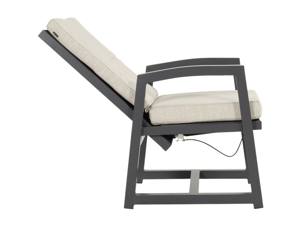 Zahradní polohovací židle Gio Hartman vás zaujme na první pohled. Hodí se nejen do exteriéru - do zahrady, na terasu nebo na balkon, ale využití najde i v interiéru. Polstrování je šité přímo na míru a dodává zahradnímu sezení naprostou pohodlnost. Díky rychleschnoucí náplni a nenasákavé textilii i po vydatném dešti rychle vyschnou. Doporučujeme polštáře během zimy skladovat na suchém místě, aby zůstaly krásné po mnoho let. Nábytek je vyroben z hliníku v barvě xerix a sand. Rám s textilenovou úpravou je ideální pro venkovní použití a nevyžaduje žádnou údržbu kromě každoročního čištění. Zábavné na této židli je, že pomocí polohovacího systému AIRPUMP lze opěrák nastavit přesně podle vašich představ. Perfektní židle, abyste si mohli užívat venkovního života celé hodiny.