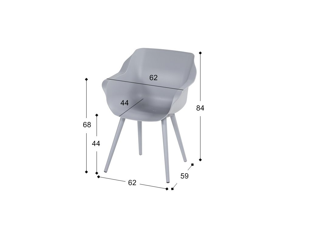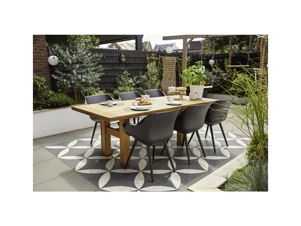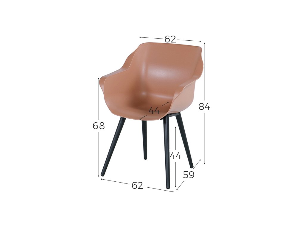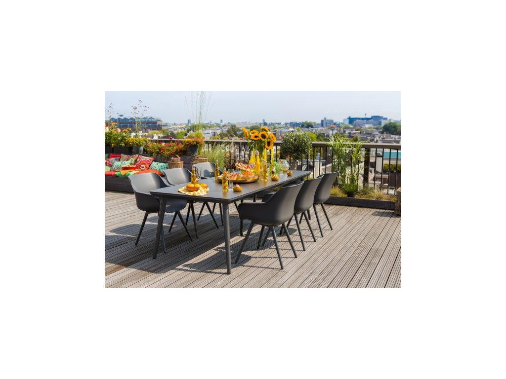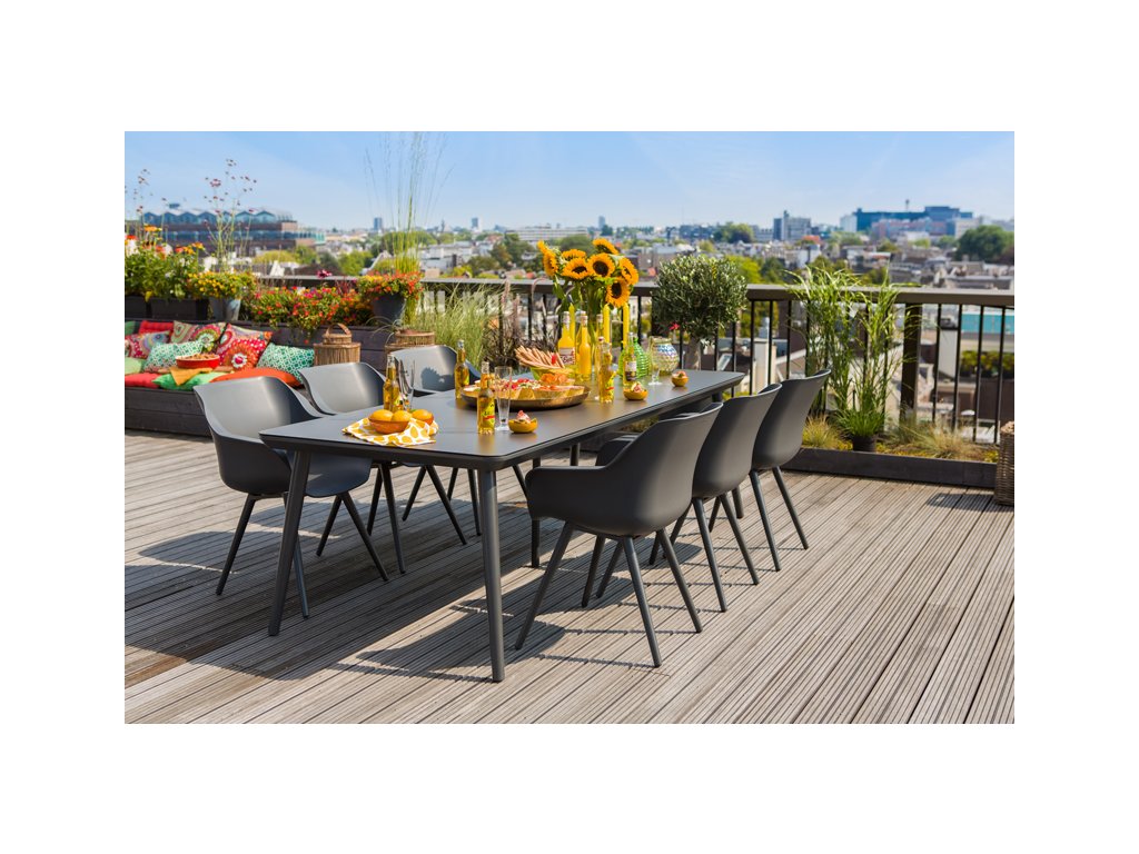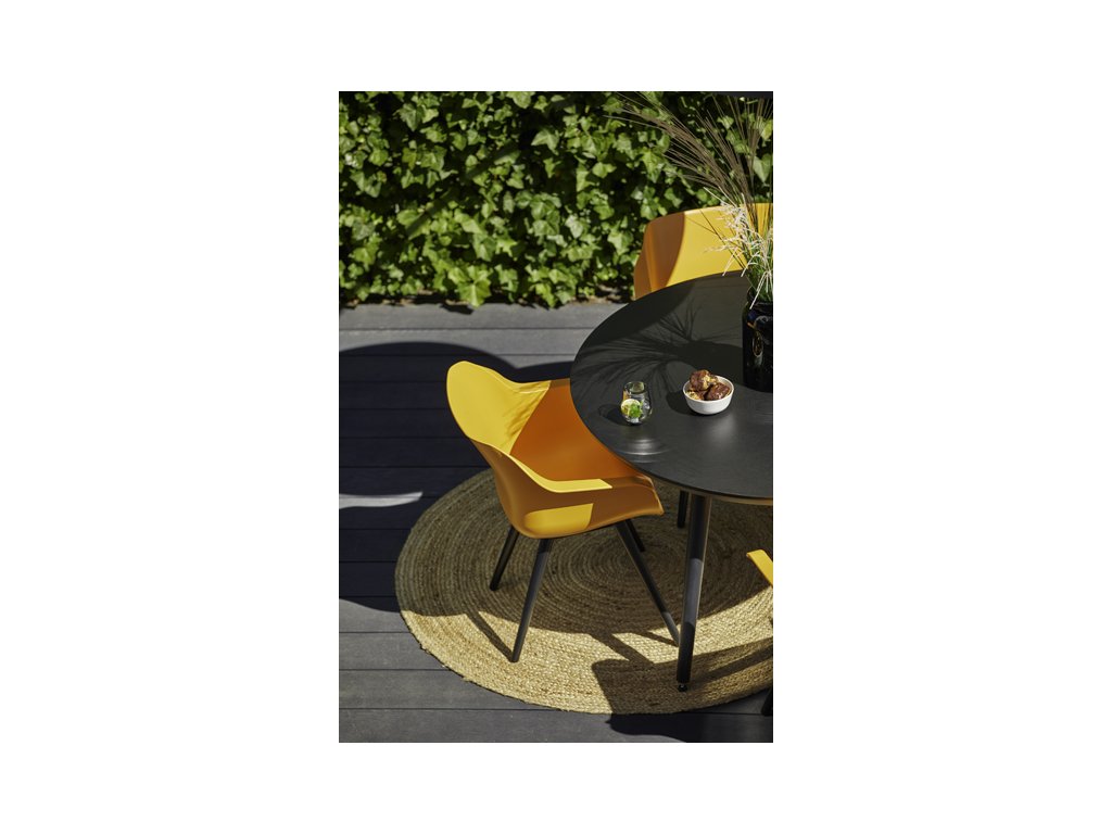 Zahradní jídelní židle Sophie Studio z kolekce Hartman je vyrobena z vysoce kvalitního plastu (tzv. Resinu) a alu podnože. Je velice pohodlná a nosnost je do 120 kg. Stálobarevný povrch je odolný vůči počasí. Díky matové povrchové úpravě je nábytek příjemný na omak a minimalizuje pocení. Zároveň tato úprava odstraňuje nepříjemné odlesky slunečního světla.Odvodňovací systém zabraňuje stojaté vodě.