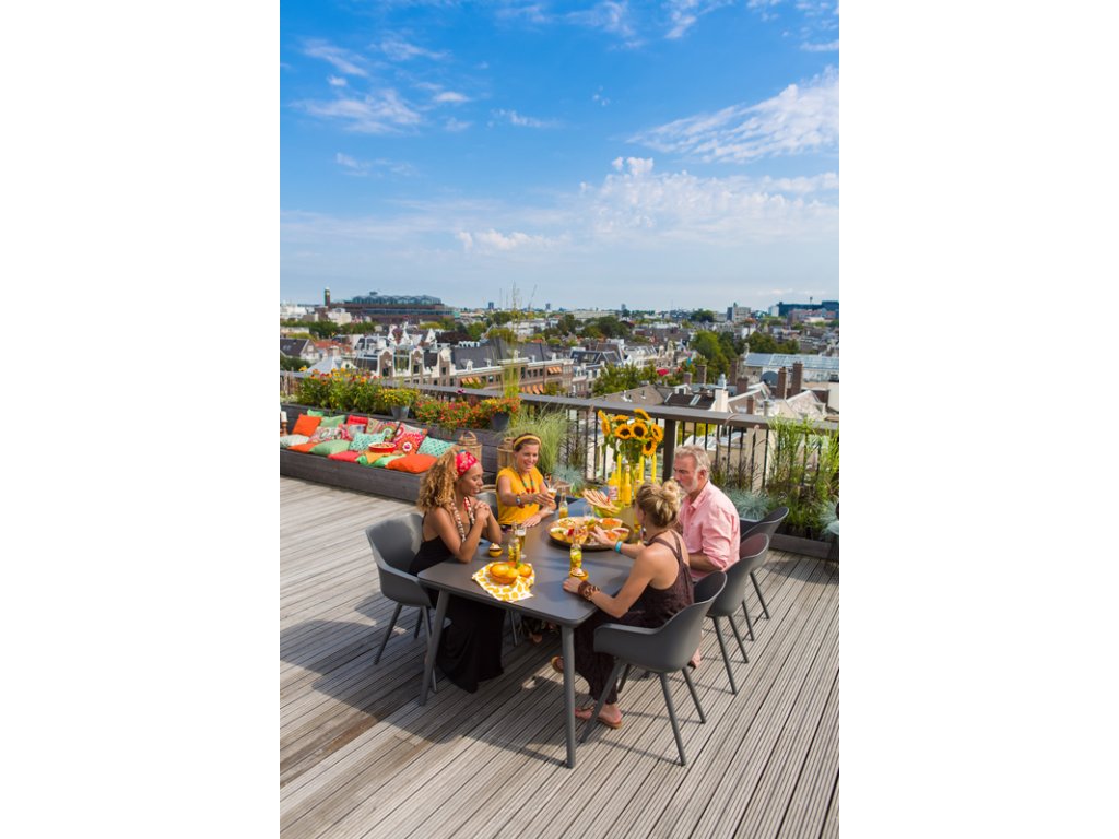 Sophie má záruku 5 let, ergonomický tvar, optimální pohodlí díky jemnému zakřivení, nízkou hmotnost a dlouho životnost, vysokou odolnost vůči povětrnostním vlivům, 100% recyklovaný materiál a snadno se čistí.
